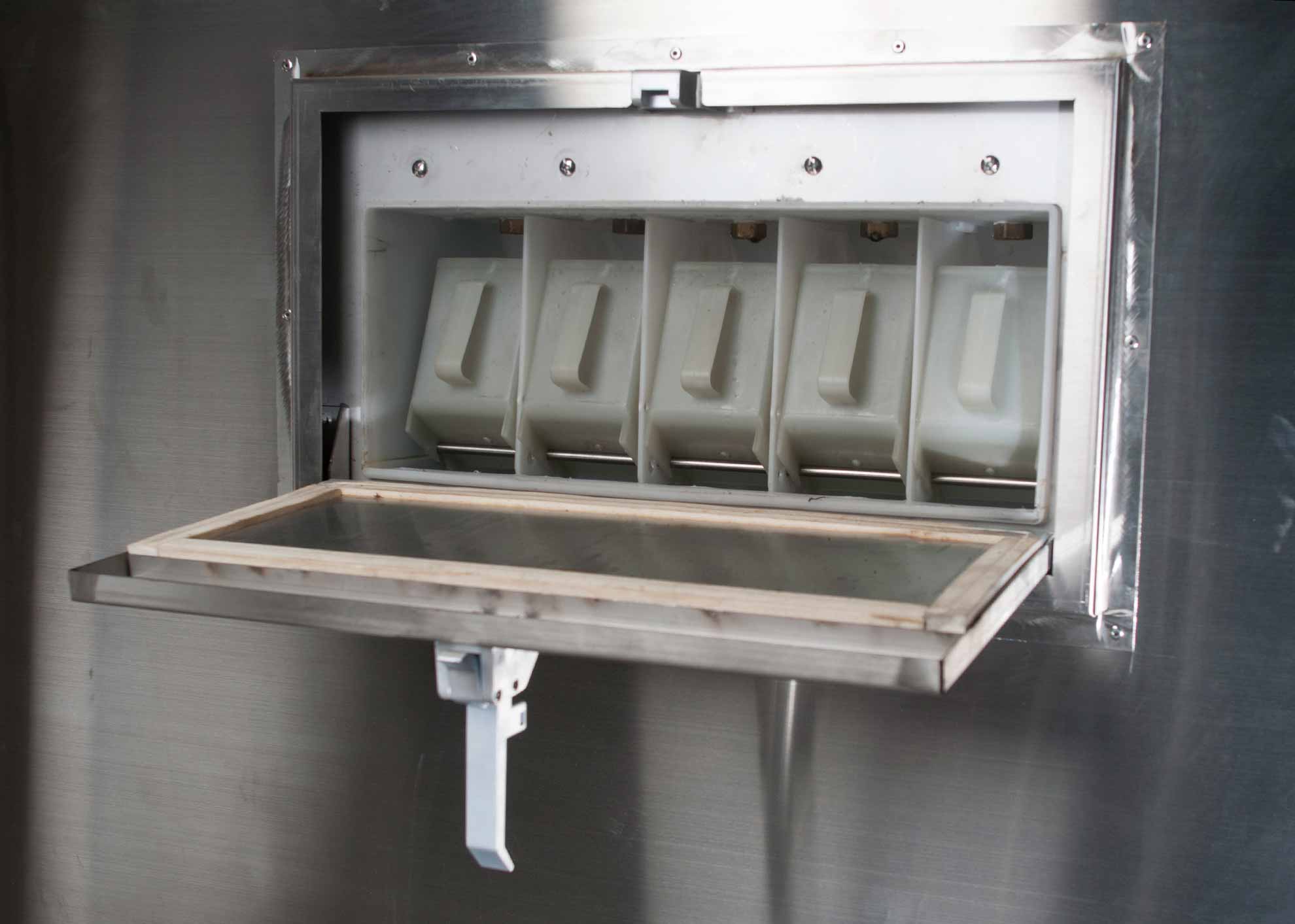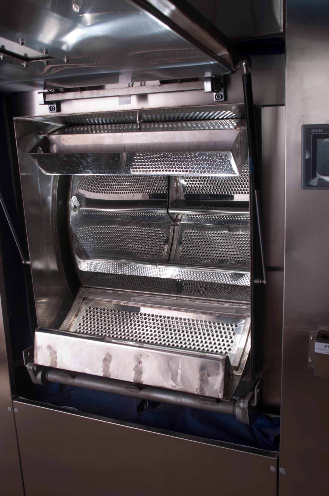Entrada y salida de ropa en forma automática. Solo en máquinas mayores a 50kg.